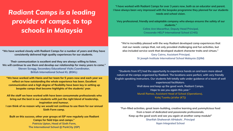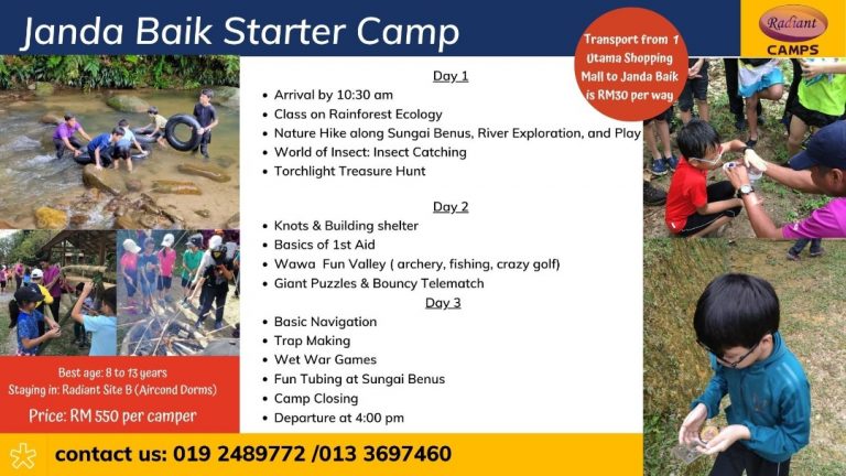 For enquiries, call Radiant's Educator team directly at 019 2489 772, or call Janda Baik Tourism, at 013 3697 460.