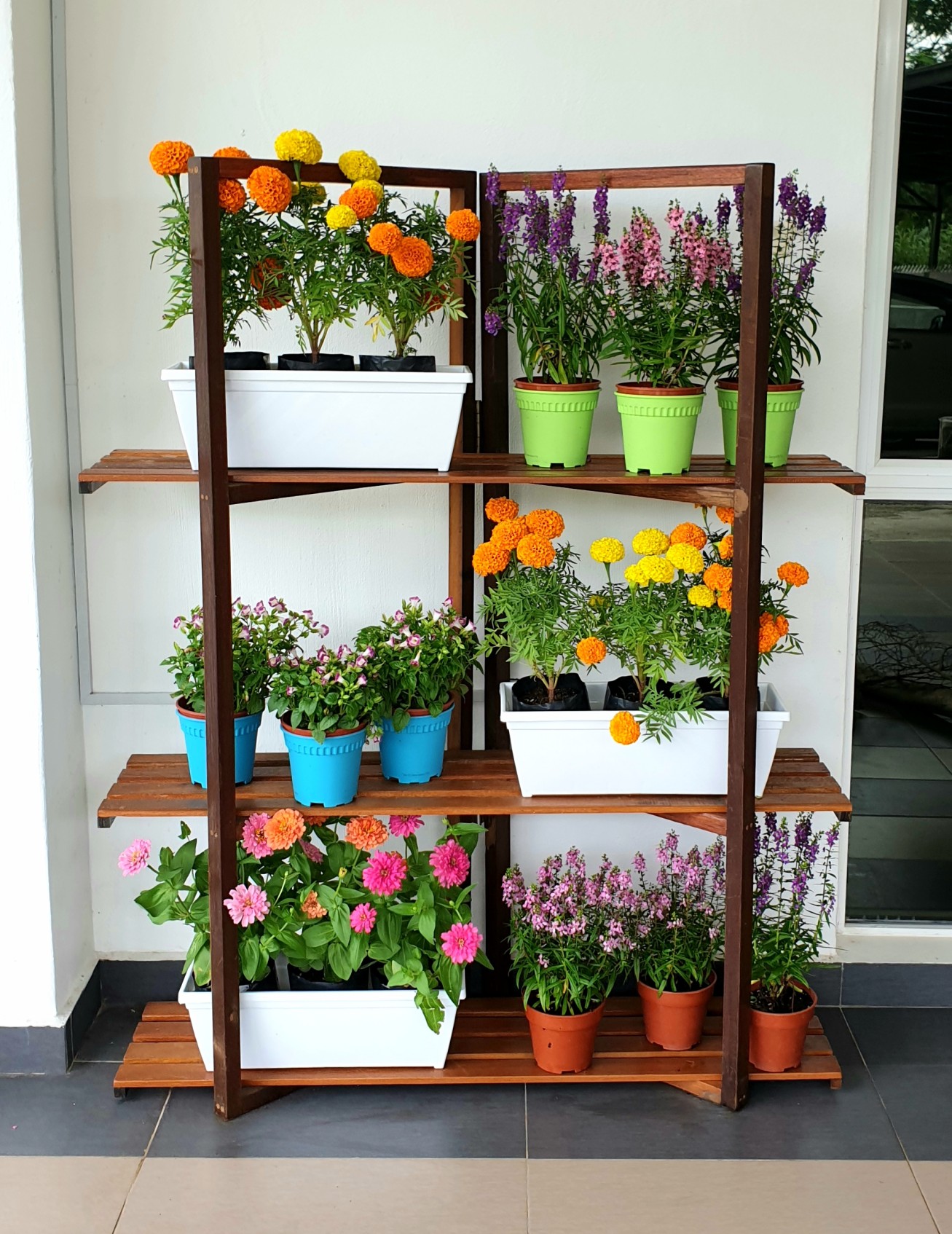 • 3 rectangular planters, 6 round coloured pots, 3 round browns pots.
